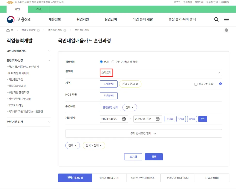 고용24로 희망하시는 과정을 수강 신청을 해야 최종 합류가 가능합니다.